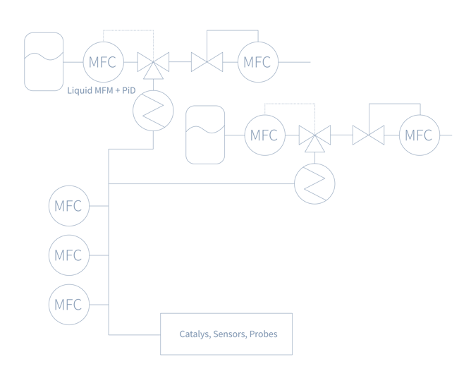 Bei Gasen, die präzise im ppm-Bereich dosiert werden müssen, wurde ein EL-FLOW Prestige F-200CV ausgewählt. Dieses Modell zeichnet sich dadurch aus, Gase auch im einstelligen ml/min Bereich mit hoher Präzision und Dynamik regeln zu können.