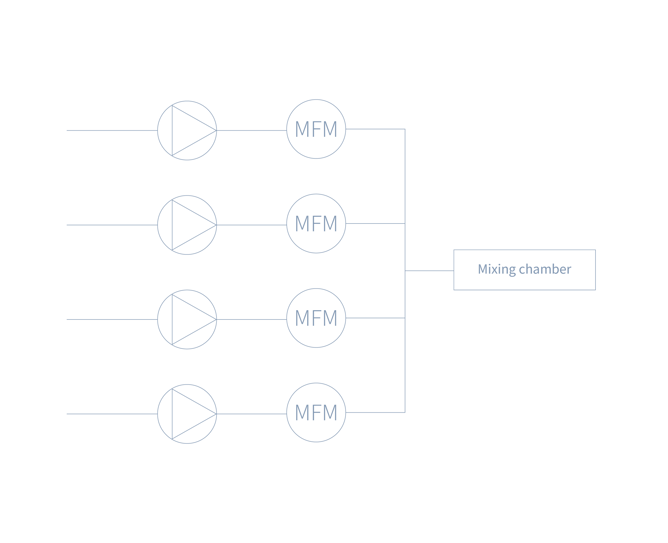 KNAUERs Impingement Jet Mixing Skids bestehen aus Hochdruck-(HPLC-)Dosierpumpen, Coriolis-Durchflussmessern, Mischern, Einlass- und Auslaufleitungen, einem Waschsystem und einem Rahmen zur gemeinsamen Unterbringung aller Bestandteile. Bronkhorst beliefert KNAUER mit bis zu 16 mini CORI-FLOW-Flüssigkeitsdurchflussmessern für jede Anlage.