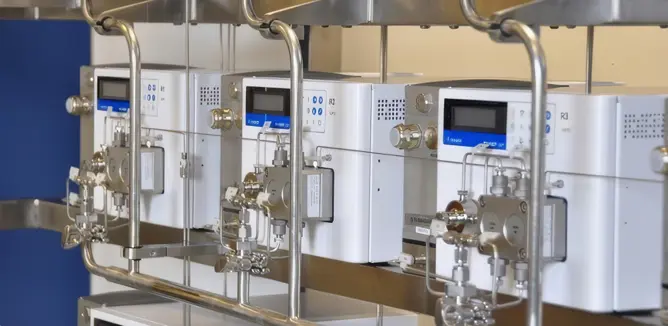 Da die Qualität von Impfstoffpartikeln im Nanometerbereich von der Durchflussstabilität abhängt, wandte sich KNAUER mit der Bitte an Bronkhorst, eine Lösung für die genaue und reproduzierbare Messung der Komponentenströme auf der Basis von Durchflussmessern für Flüssigkeiten zu finden.