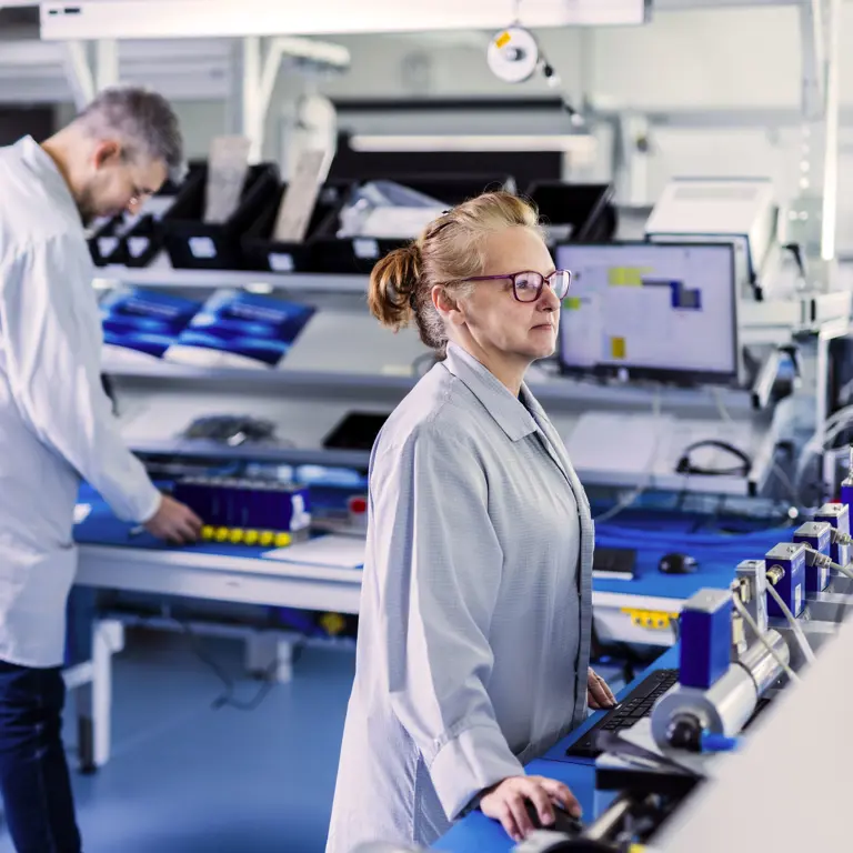 - Fertigung in gerätespezifischen Produktionszellen, unter anderem auch im Reinraum