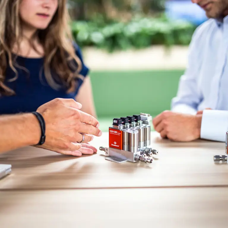 Effiziente Gasdurchflussregelung für analytische Geräte wie Massenspektrometrie, Chromatographie und mehr mit FLEXI-FLOW Compact.