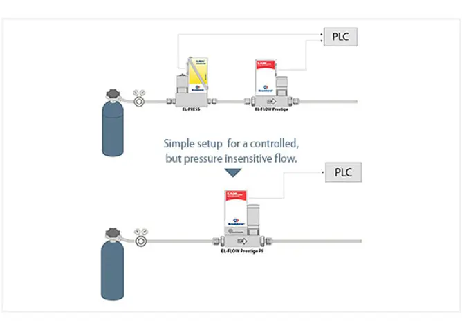 Diese Schwankungen können entstehen aufgrund eines stetig sinkenden Druckes in einer Gasversorgung (Druckgasflasche) oder aufgrund gegenseitiger Beeinflussung mehrerer Durchflussregler oder anderer Stellglieder in einem System. Wie löst Bronkhorst diese Probleme, und welche Lösungen bieten wir an?