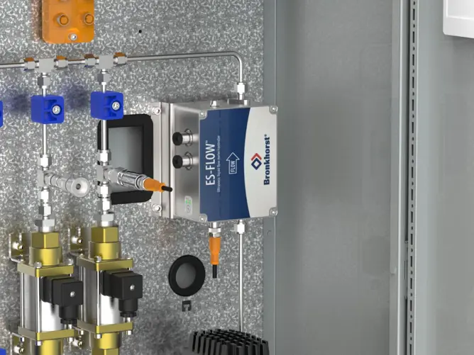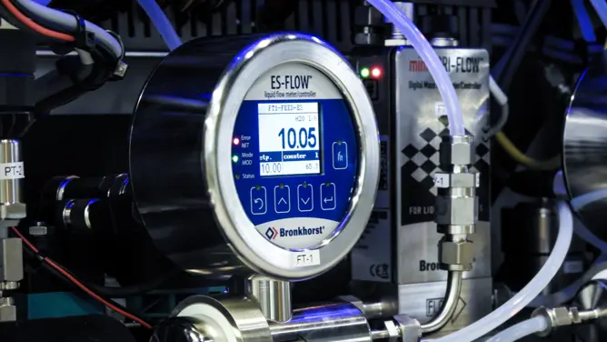 Ultraschall-Durchflussmesser der ES-FLOW-Serie von Bronkhorst können Volumenströme von 0,4 bis 1500 ml/min mithilfe von Ultraschall messen und regeln. Sie bestimmen effektiv die Fließgeschwindigkeit, die, wenn sie mit dem bekannten Rohrquerschnitt im Gerät multipliziert wird, zu volumetrischen ausgegebenen Flüssigkeitsströmen führt. Weitere Informationen zum Massendurchfluss versus Volumendurchfluss finden Sie in unserem Wissenscenter.